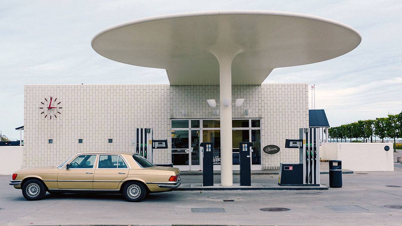 Je supprime la publicitéAyant poursuivi sa route vers le nord, Liechtenstein arrive près de Copenhague, où se dresse une superbe station-service conçue dans les années 1930.