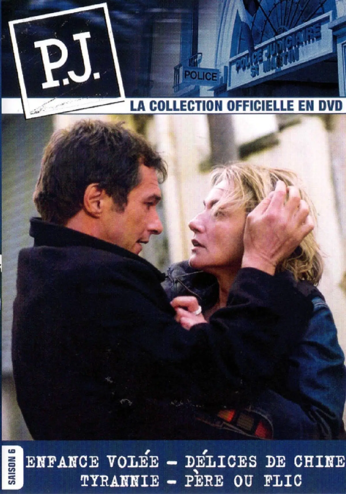 Serie P.J. : Police judiciaire 55min 2003Les flics de la PJ arrivent dans un immeuble d'où retentissent les cris d'une femme. On pense qu'un homme est en train de battre sa femme. Mais on découvre que c'est le mari qui est sérieusement blessé au visage. Et c'est son épouse qui le soigne. Qui bat qui ? Dans le même temps, une boutique de piercing a été sauvagement vandalisée.