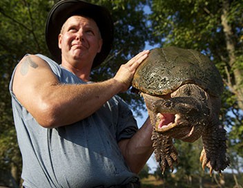 Ernie Brown Jr, surnommé «l'homme tortue», accompagné de son ami Neal James et de sa chienne Lolly, présente les espèces animales du Kentucky.