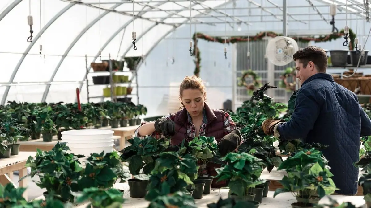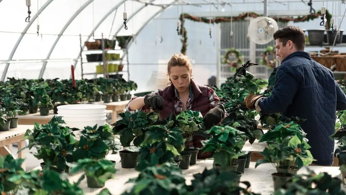 Ellie Palmer, une jeune femme qui travaille en ville dans une agence d'urbanisme, doit provisoirement quitter son poste pour aller aider son père dans la ferme horticole familiale. Elle découvre qu'il a engagé Shawn Dalton, un jeune agriculteur. Elle apprend également que, pour une raison inconnue, les poinsettias qu'ils doivent livrer à Noël, ne sont pas devenus rouges et qu'ils ne pourront pas honorer leurs commandes annuelles. De ce fait, ils risquent de devoir vendre la ferme pour laquelle Patty Mason, une jeune femme ambitieuse qui anime une émission de cuisine, leur a fait une proposition. Tiraillée par son travail à distance pour l'agence, son hostilité pour Patty et sa rivalité avec Shawn, Ellie décide de tout mettre en oeuvre pour sauver la ferme de ses parents...