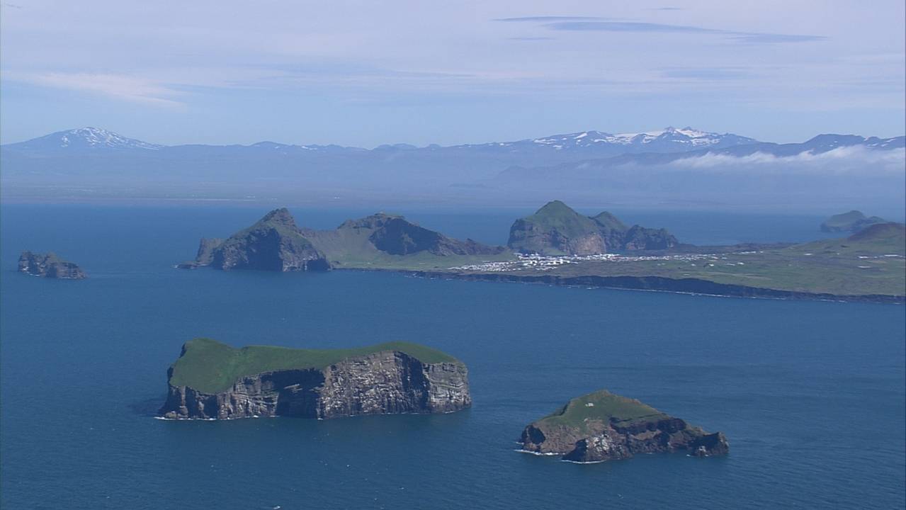 Je supprime la publicitéL'Islande, aux falaises abruptes, aux vallons verts et aux villages aux maisons blanches et aux toits rouges, se découvre diféremment depuis le ciel.