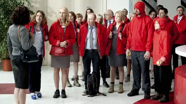 En arrivant au bureau, Karine trouve tous les employés dans le hall, vêtus de vêtements de pluie, sacs sur le dos et prêts à partir pour le stage de survie annoncé. Ils déchantent quand ils apprennent que le stage ne se passera pas à l'extérieur, mais dans les murs de l'entreprise, Karine craignant de laisser les locaux vides, à la merci des Chinois qui pourraient en profiter pour délocaliser l'entreprise. Cependant, les filles retrouvent le sourire en voyant arriver leur moniteur, le séduisant Jean-Félix. Commence une journée de randonnées, d'exercices physiques et de découverte de la "nature"...